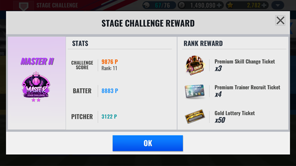 A pop-up that shows your accumulated score and rewards according to your tier will be displayed when you enter Stage Challenge after the tallying ends every 2 weeks on Wednesday.